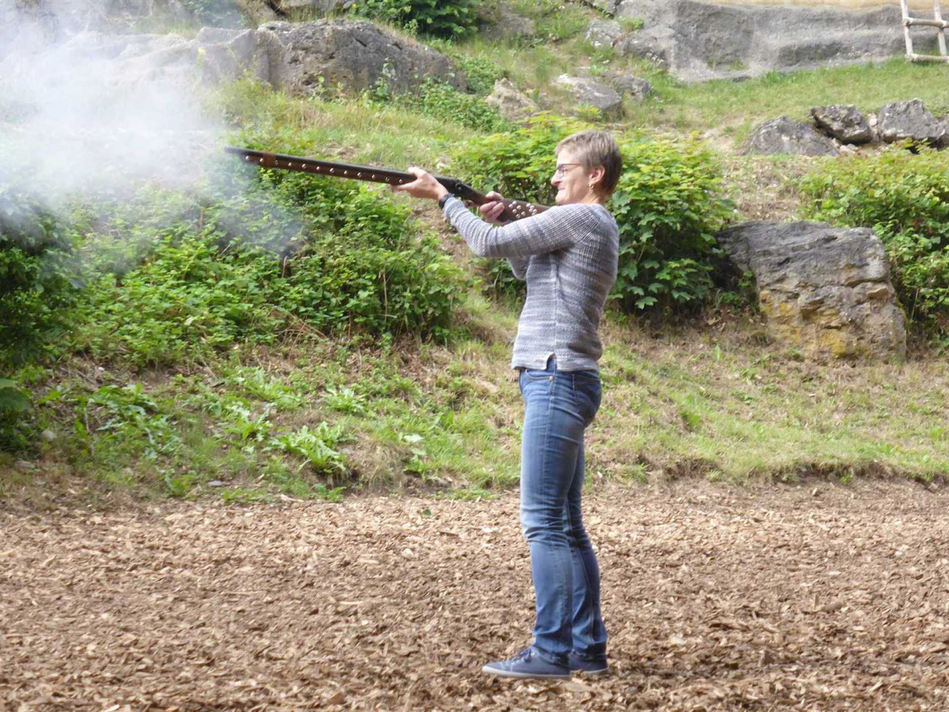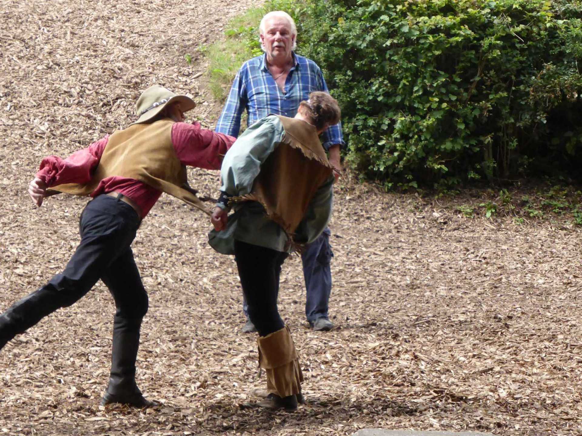 Stunts und pyrotechnische Effekte wurden erläutert und anschließend mit Teilnehmern demonstriert. Im Anschluss daran konnten alle bei herrlichem Wetter Vorführungen der Falknerei erleben.