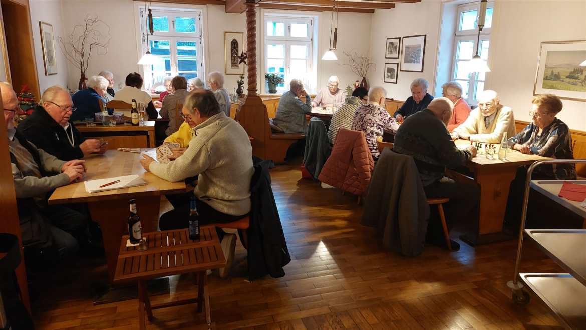 Jeden Dienstag treffen sich Seniorinnen und Senioren zwischen 14.30 h und 17.30 h in der Gaststube des Heimathauses, Annostraße 3. Bei Karten- und Brettspielen und beim Klönen vergeht die Zeit wie im Flug. Aus der Innenstadt und den umliegenden Ortschaften kommen sie, um bei Kaffee, Kuchen und kalten Getränken einen schönen Nachmittag zu verbringen. Neulinge werden gerne gesehen und herzlich aufgenommen. Auch wer gerne Skat spielt ist hier gut aufgehoben. Eine vorherige Anmeldung ist nicht notwendig.