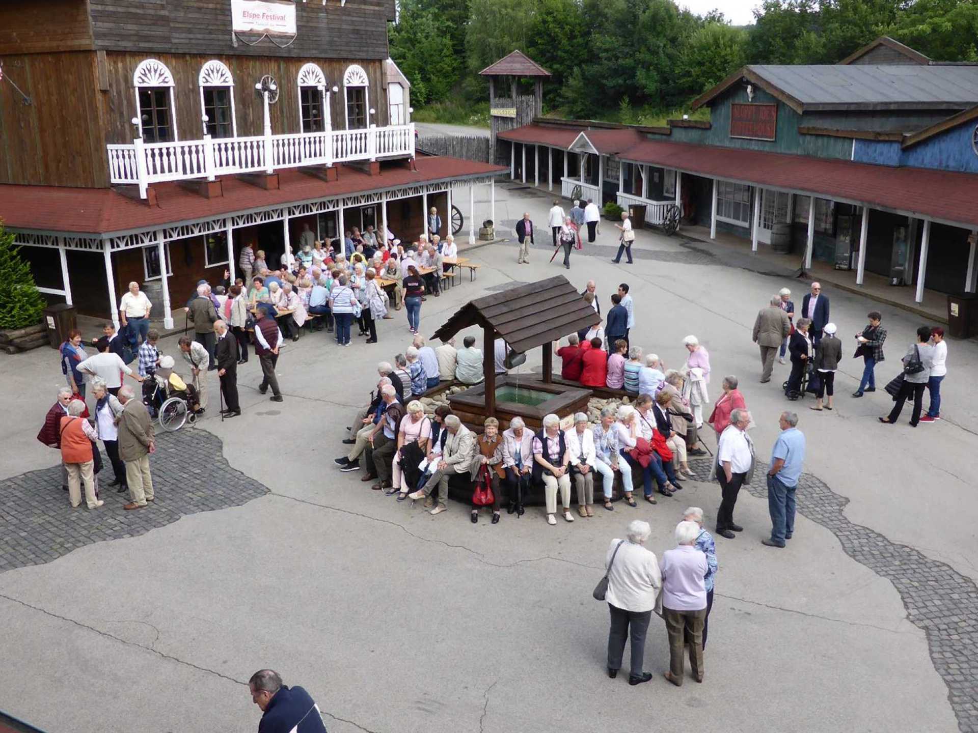 Über 300 Seniorinnen und Senioren folgten der Einladung des Altenwerks Drolshagen zu einer Fahrt in das Gelände der Karl-May-Festspiele Elspe. Mit von der Partie waren der stellvertretende Bürgermeister Andreas Wigger und Pastor Markus Leber.