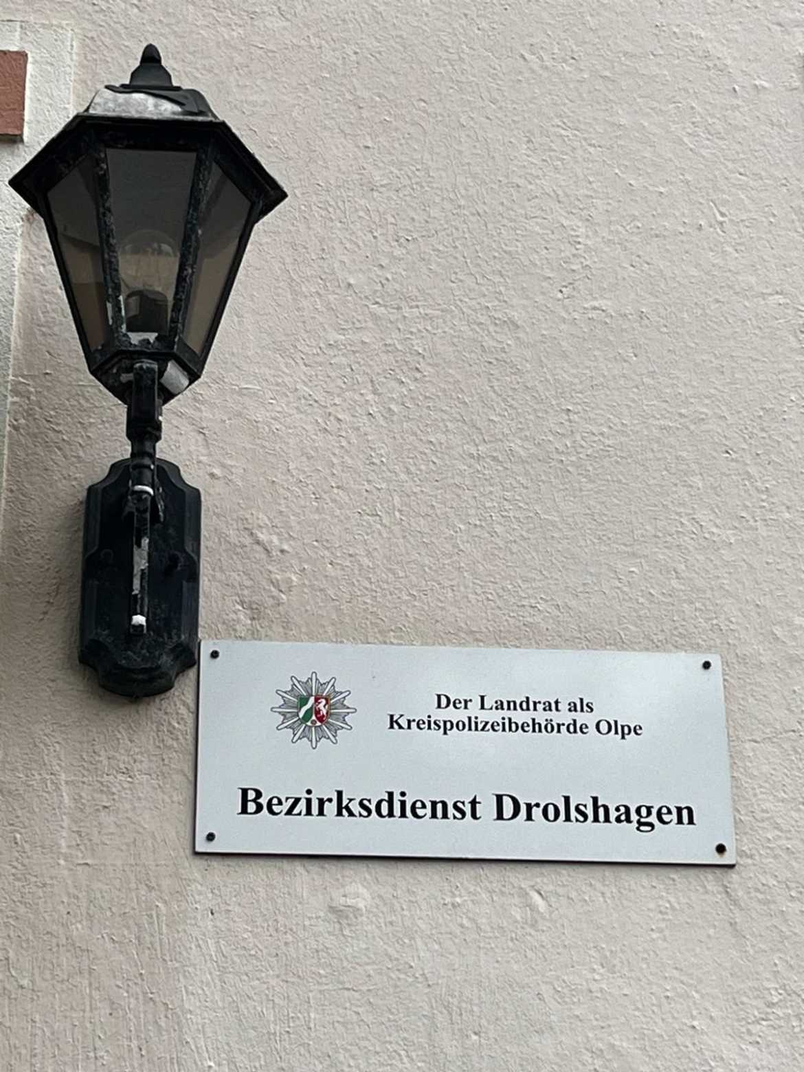Logo der Polizei - Polizeistation vor der Kirche